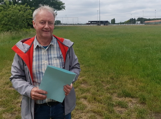 1 : geplande locatie windmolen met op achtergrond voetbal terreinen KFC Zoersel